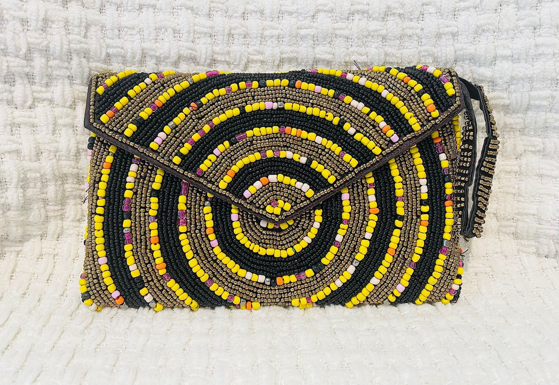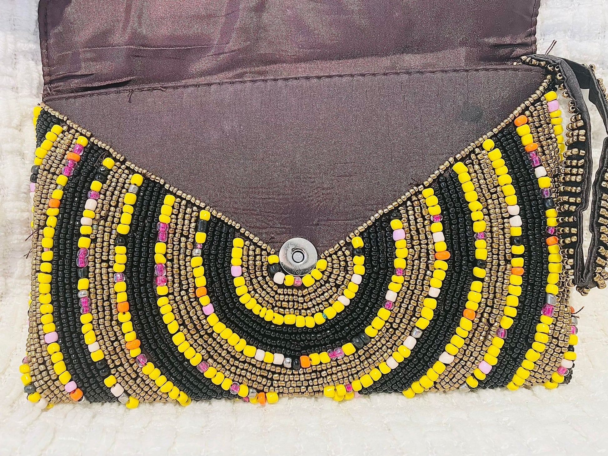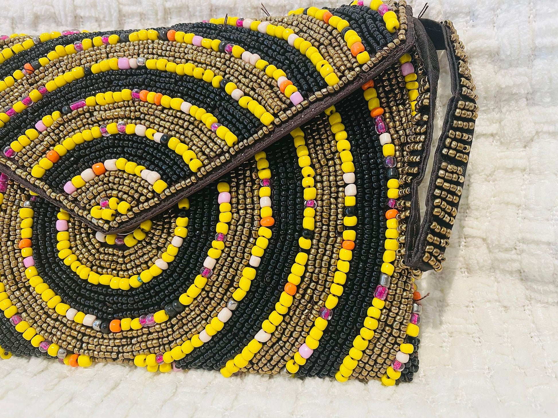 Hand beaded black and gold clutch